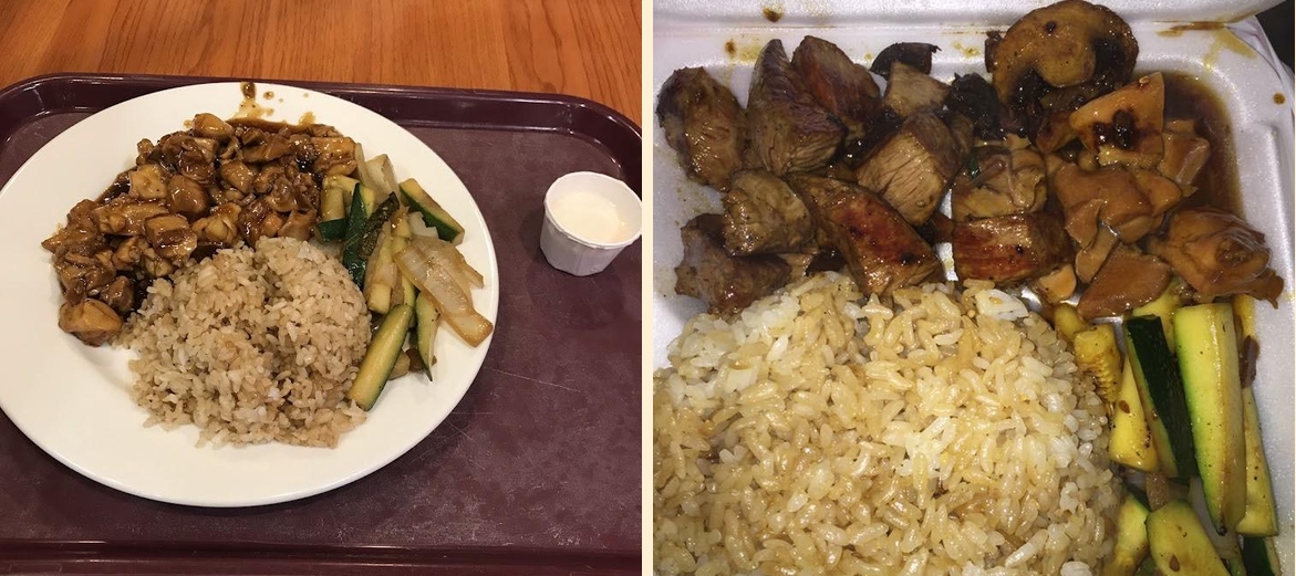 Kyoto Express offers a diverse menu. Must-try items include California rolls, hibachi shrimp, and dumplings. Express bowls with chicken or steak are also favorites. Don't forget the miso soup to start your meal.